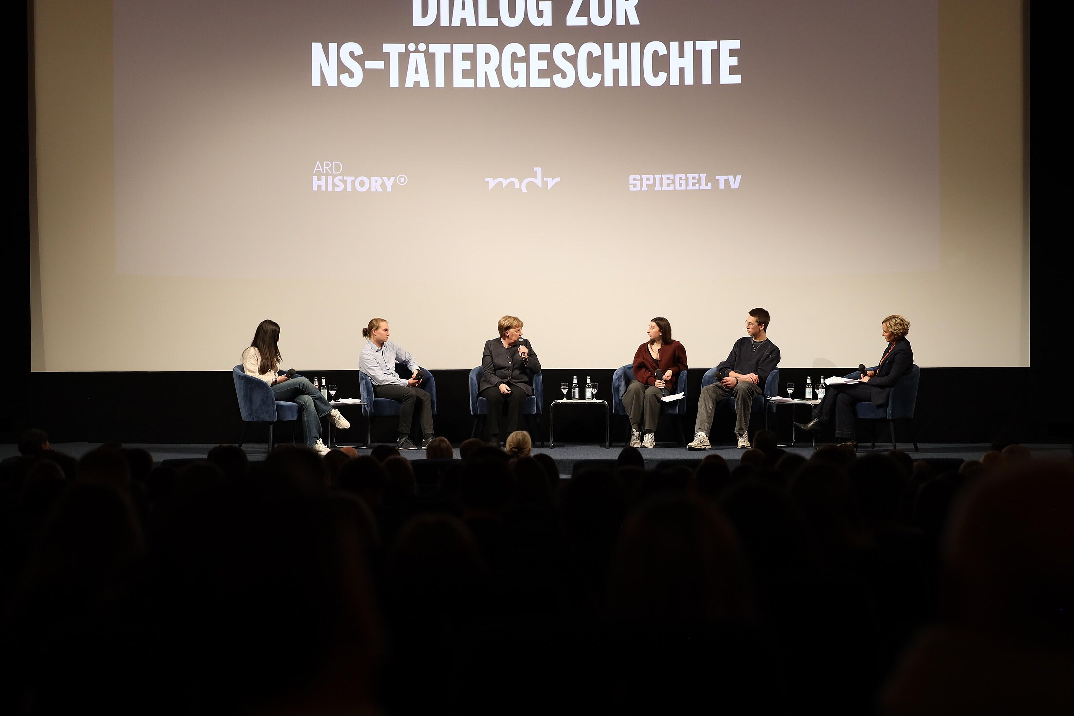 Fast 200 Schülerinnen und Schüler aus Leipzig, Halle/Saale und Berlin haben sich mit ihren Lehrerinnen und Lehrern intensiv darauf vorbereitet, an diesem Dienstag in den Dialog mit Bundeskanzlerin a.D., Dr. Angela Merkel zu treten. Moderiert von Caren Miosga diskutierten sie darüber, wie in der NS-Zeit aus jungen Männern Mörder werden konnten und wie sich eine Wiederholung der Geschichte heute verhindern lässt.